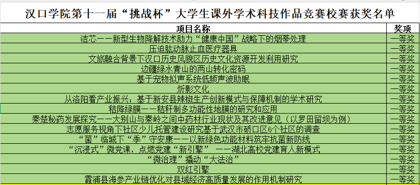 williamhill威廉希尔官网第十一届“挑战杯”大学生课外学术科技作品竞赛校赛结果公示